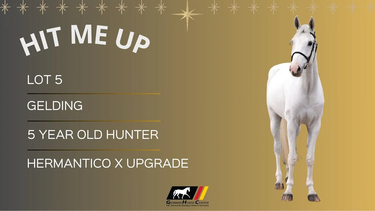 Our 5-year-old gelding by Hermantico × Upgrade is your next hunter prospect. Naturally well-balanced with a lovely, classic style. Already placed up to 1.10m, “Hit Me Up” is soft to ride, sweet in character, and truly charming. With his rhythm, willingness, and elegant way of going, he has everything it takes to grow into a top-quality hunter. He is suitable for an amateur later on, but at this stage best developed by a professional, before becoming the perfect match for an amateur in the future. A kind-hearted youngster with talent and beauty. 🎄 A delightful prospect for the hunter ring - meet “Hit Me Up”!